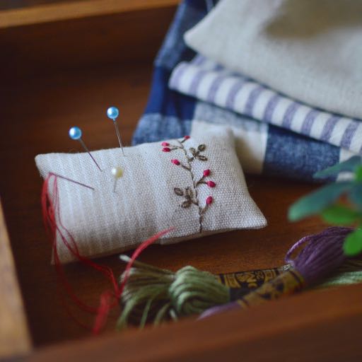 『バラの刺繍をリネン地に』