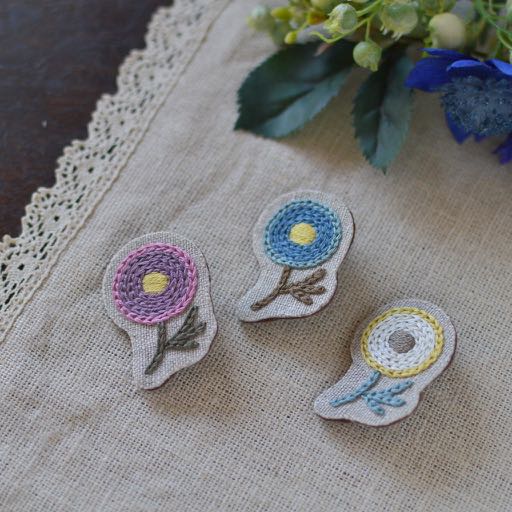 『サテンステッチで作るお花のブローチ』